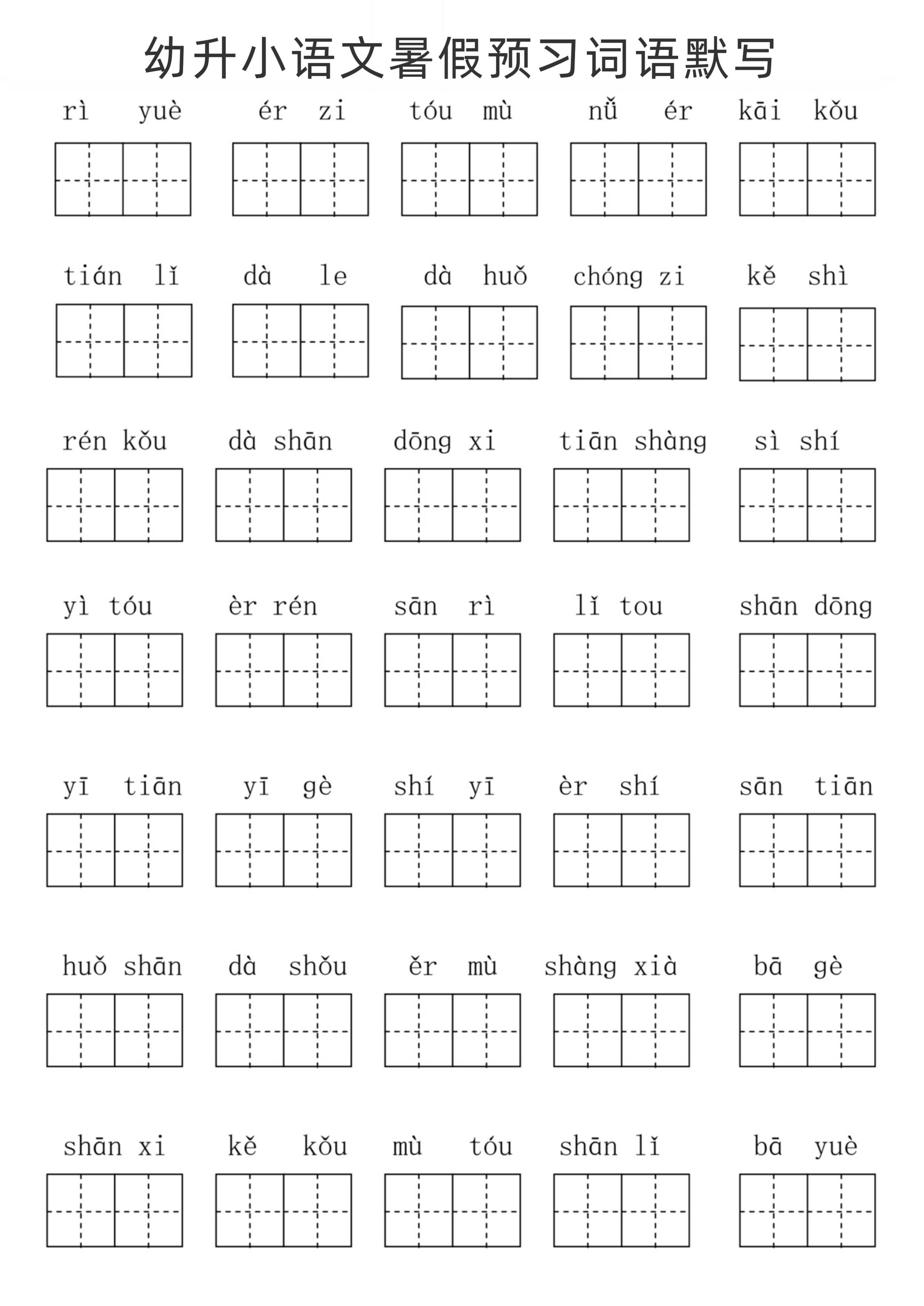 幼升小语文暑假预习词语默写