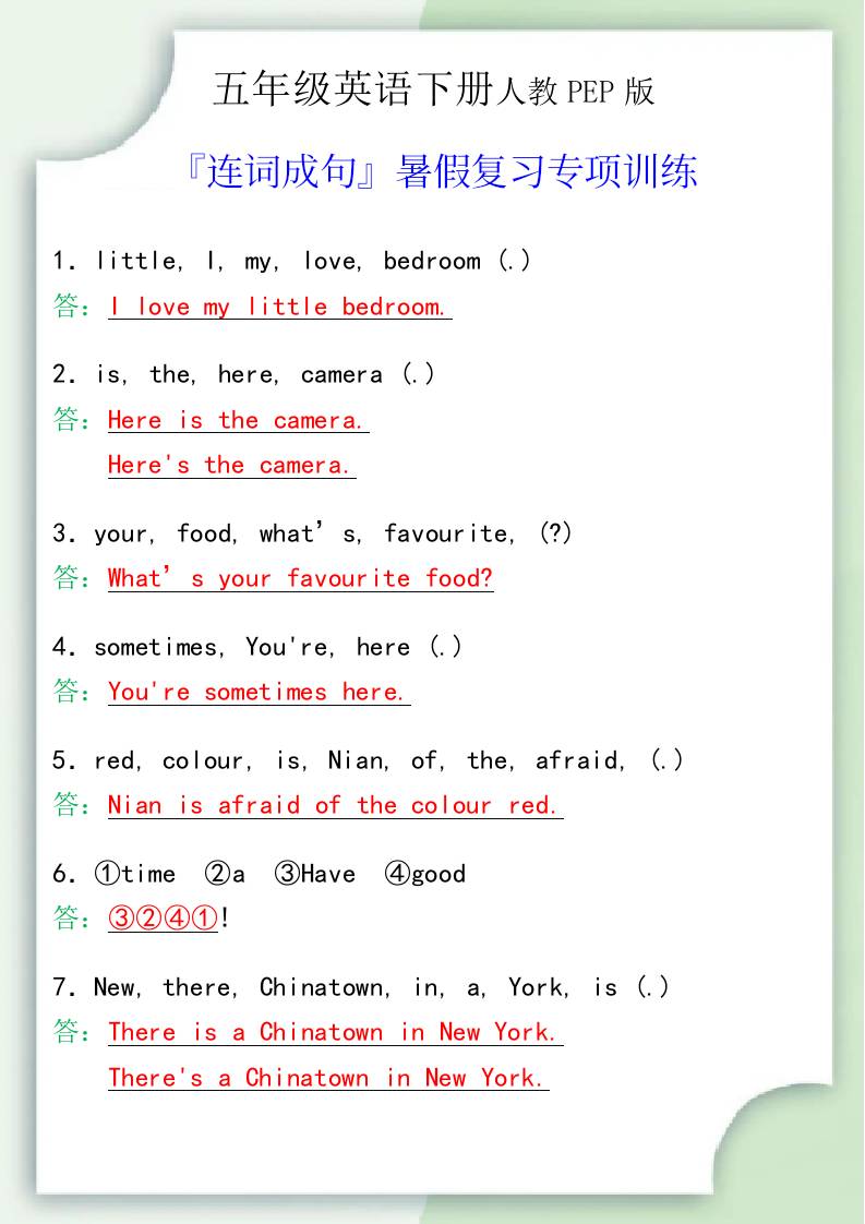 五升六英语暑假作业之按要求写出下列各单词或词组-六上英语
