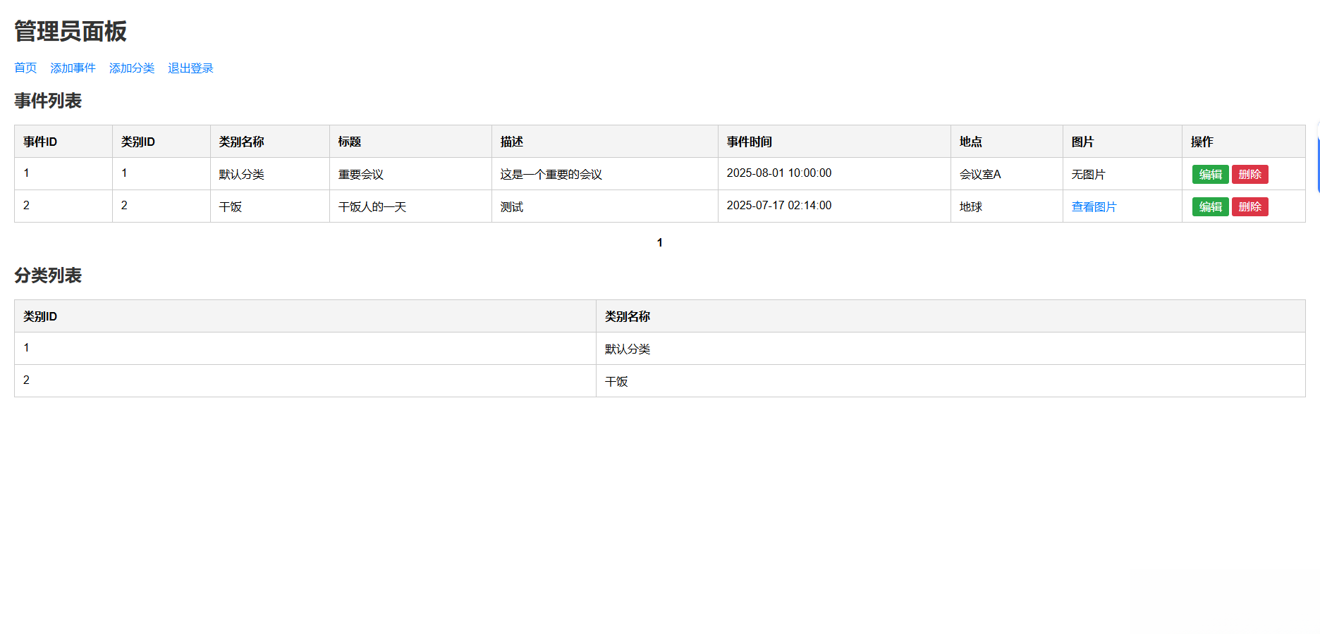 自适应手机电脑端,可以用来记录生活日常,支持设置事件分类,带后台