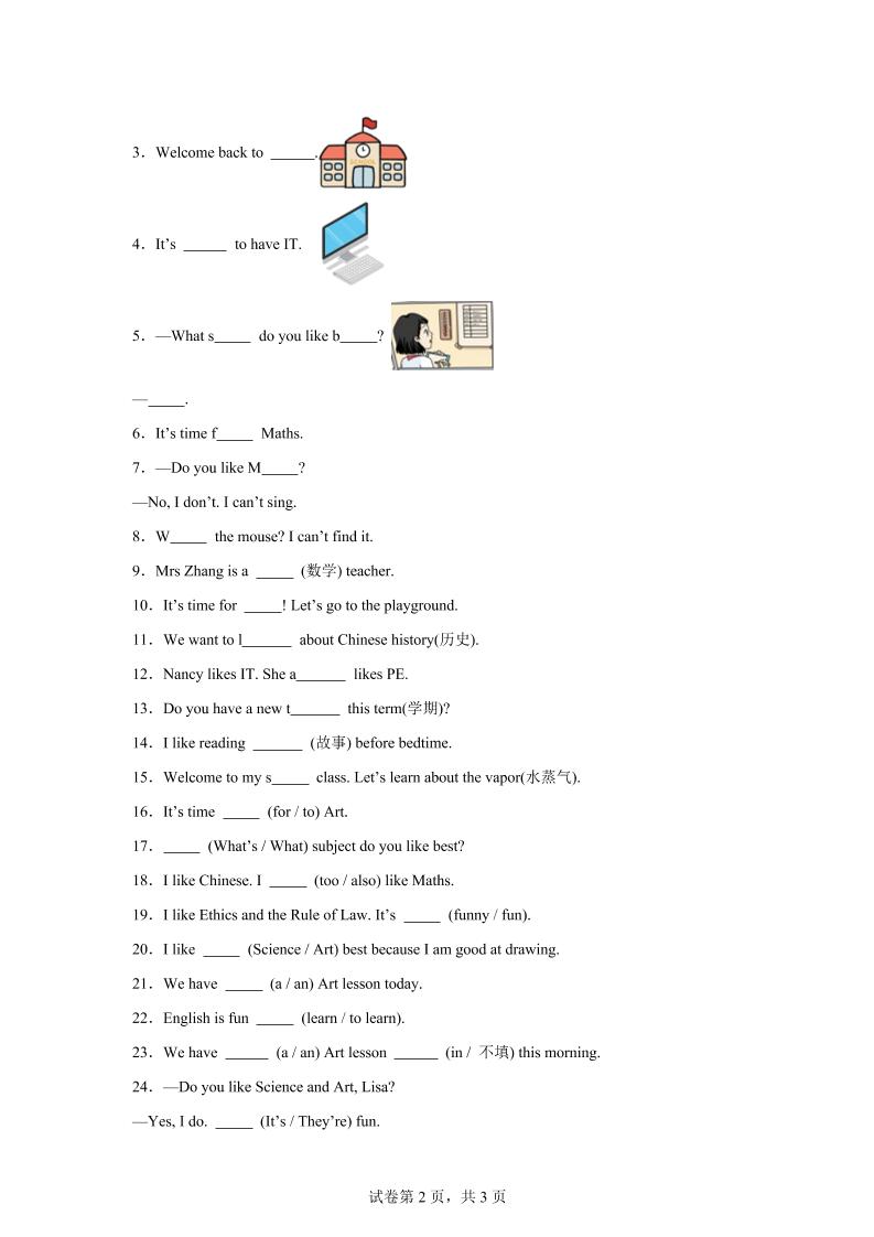 首页 > 全部 > 英语 > 2025-2026学年译林版(三起)(2024)英语四年级上册Unit1Ourschoolsubjects词汇(单元测试)