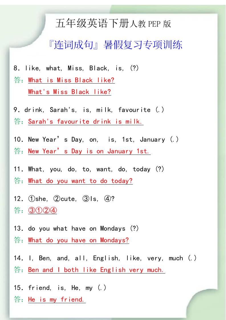 首页 > 全部 > 英语 > 五年级英语下册『连词成句』暑假复习专项训练
