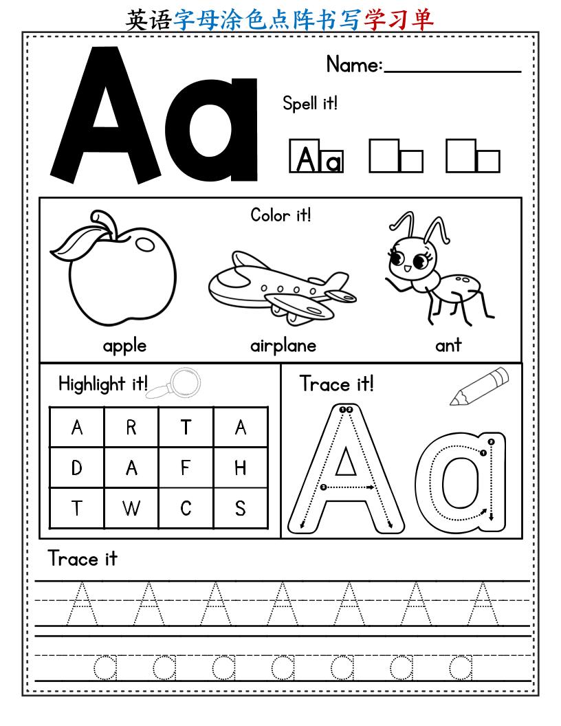二升三暑假英语字母涂色点阵书写学习单26页-三上英语